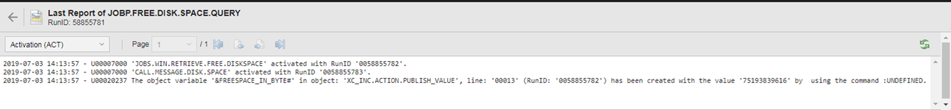 Click the Last Report button in the toolbar. The report view opens to the Activation (ACT) report.