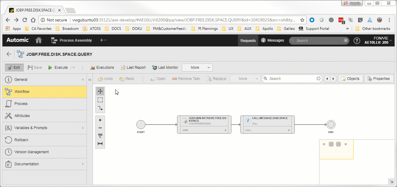 This topic is interesting for first users of Automic Automation. It describes how to create a basic Workflow. The Workflow contains a Job and a Notification object. When the Workflow is executed, the Job is processed and, if it ends successfully, the Notification is triggered. For more information, see Creating Your First Job, Enhancing Your First Job and Creating Your First Notification.