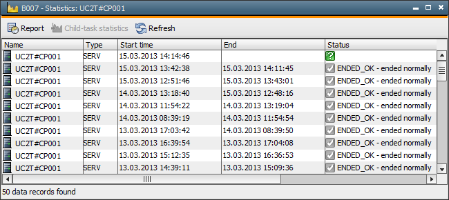 A statistical record is created each time a server or agent starts. These records end when the server or agent are terminated.