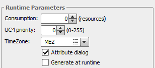 The resource consumption of jobs and file transfers that should not use the default value can be specified in the particular object's Attributes tab. If value "0" is entered in this field, the default value of the variable UC_SYSTEM_SETTINGS is used.