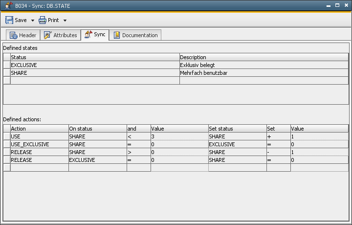Here you define one or more statuses which can be assumed by the Sync object. |