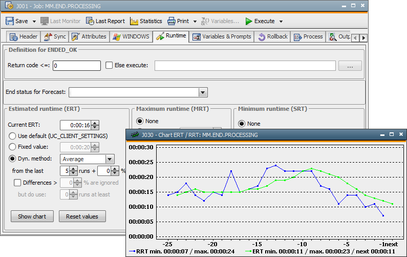 To preserve a distance between estimated runtime and real runtime, it is possible to specify a correction value in percent This value is added to the estimated runtimes. This ensures that the estimated runtime (ERT) follows the real runtime of a task at the specified distance.