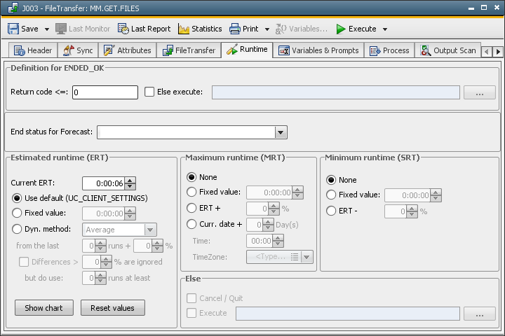The maximum runtime is supervised The valid estimated runtime (ERT) at the time of the task's activation is used as the maximum runtime. An action as an ELSE condition must be specified which reacts when maximum runtime is exceeded. |