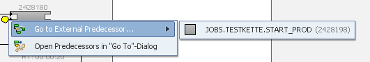 Each external dependency has a context menu that includes the specific commands Go to External Predecessor / Successor and Open Predecessors / Successors in its Go To dialog. A description of these commands is available in the Popup Menu description.