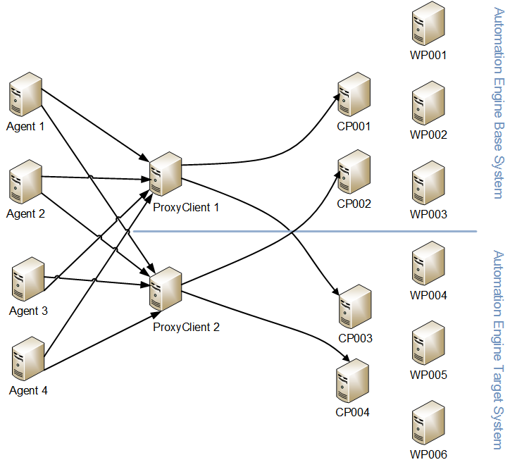 - The connections will be taken care of by the Proxy so that agents will be connected to whatever system and CPs are active and in use, be it base or target system.
