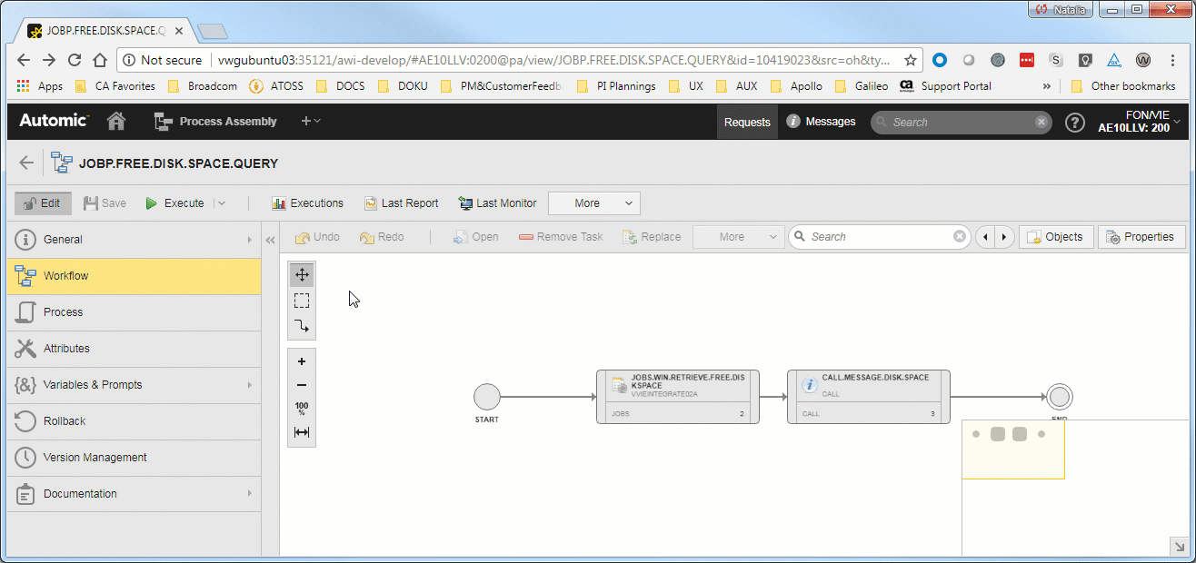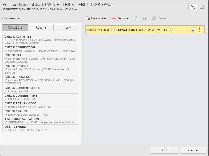 - On the Postconditions of JOBS.WIN.RETRIEVE.FREE.DISKSPACE dialog open the Actions tab.