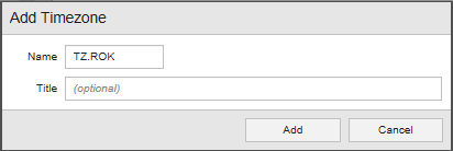 When defining timezones different from CET, and GMT the TZ TimeZone object must be selected. Naming conventions are as follows: TZ.{timezone abbreviation}, where the TZ prefix is optional.