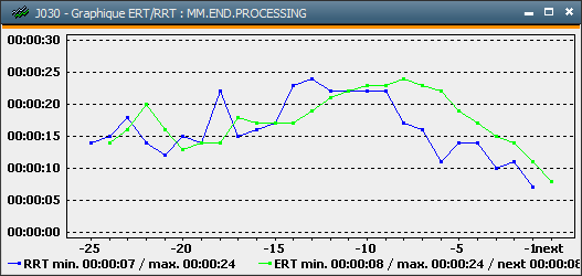 La RRT est utilisée comme base pour le calcul de la durée moyenne estimée (ERT) d'une Tâche. Pour ce faire, les durées d'exécution réelles des 25 dernières exécutions de la Tâche sont enregistrées dans les données d'objet. Mais seules les exécutions qui se sont terminées avec le statut "ENDED_OK" sont prises en compte. Les exécutions interrompues ou redémarrées ne sont pas enregistrées.