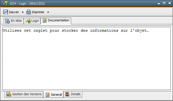 Tous les onglets de Documentation qui sont entrés dans la Variable UC_OBJECT_DOCU par l'administrateur sont affichés. Indépendamment de cela, les objets importés disposent en plus de leurs propres onglets Documentation.