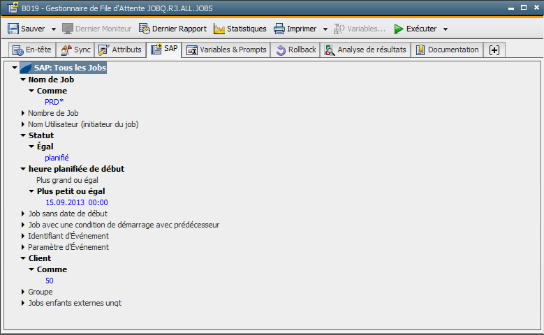 Sélectionne des Jobs SAP et affiche le résultat dans le rapport d'activation ou dans un fichier. |