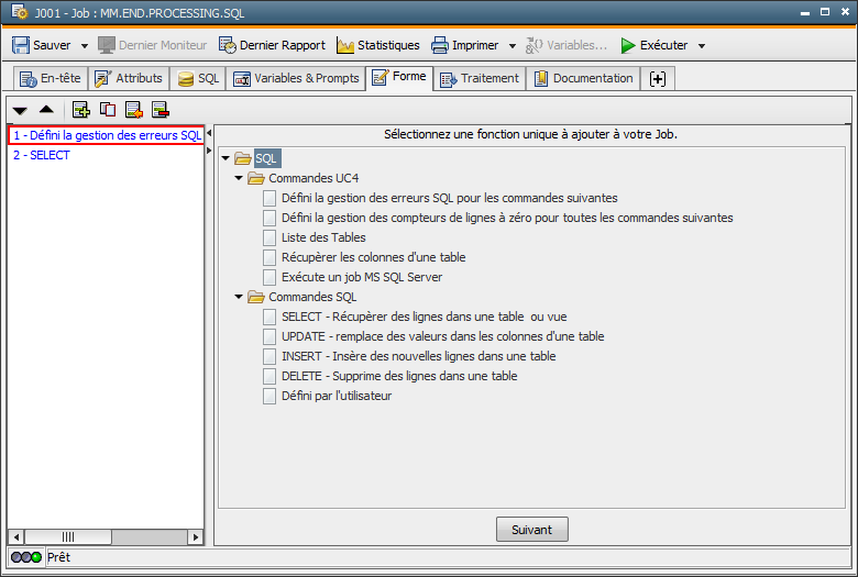 Onglet Forme (SQL)| L'onglet Forme est un onglet spécifique à un type d'objet et on ne peut le trouver sous cet aspect que pour les Jobs SQL, PeopleSoft, SAP et JMX. On peut y entrer facilement des commandes SQL avec des formulaires. |