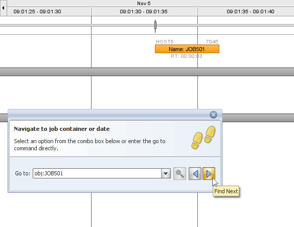 Supposons que vous voulez analyser la régularité et le statut d'une tâche planifiée périodiquement. Pour rechercher les instances de la tâche, utilisons la boîte de dialogue de recherche Aller à.