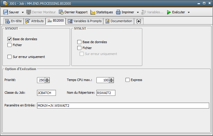 BS2000| Le document suivant présente les paramètres spécifiques à la plate-forme d'un Job BS2000. |