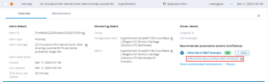 Es sind noch keine empfohlenen Aktionen bekannt. Wir führen die erste Aktion für diesem Alarm unter Verwendung von JOBP.AIOPS.HELLO.WORLD.REST aus.