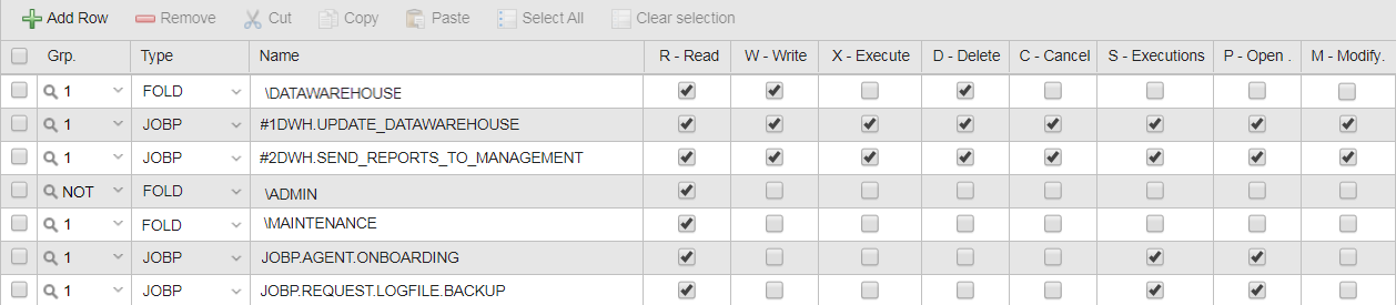 - Sie sollten spezifisch die Objekte hinzufügen, die für bestimmte Benutzer nicht zugreifbar sein sollen. Siehe auch: Automation Engine Ordner-Berechtigungen