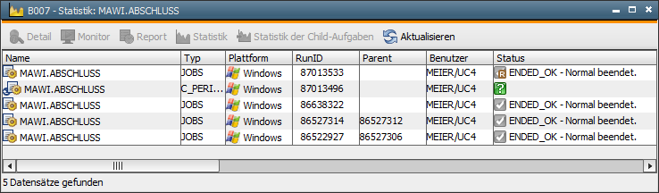 aktuellster Wiederanlauf einer DurchführungDie folgende Abbildung zeigt eine Aufgabe mit der RunID 2384068, die zwei Mal wiederholt wurde: