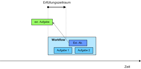Der Erfüllungszeitraum ist jener Zeitabschnitt, in dem die externe Aufgabe mindestens einmal endet oder ein Timeout eintritt.