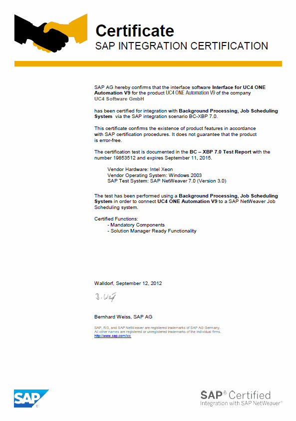 Die Funktionalitäten betreffend SAP sind selbstverständlich zertifiziert.