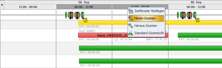 Die Mehrfachselektion ist sinnvoll im Zusammenhang mit dem Kontextmenü-Befehl Hinein-Zoomen. Das neue Zeitfenster entspricht dann den gewählten Zeitabschnitten.