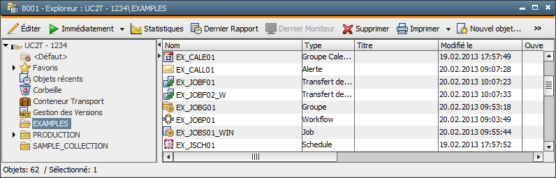Dès le début du chapitre, vous avez créé un dossier. Attention : en raison de l'orientation objet de Automation Engine, les dossiers sont aussi des types d'objet et peuvent donc être créés via le bouton