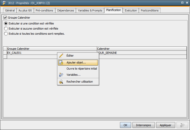 Quel que soit l'endroit de l'Interface Utilisateur où vous vous trouvez, les commandes disponibles sont toujours visibles dans le menu, les boutons de la barre d'outils, le menu contextuel (touche droite de la souris) ou à l'aide des combinaisons de touches. Lors de la reprise du Workflow, vous avez pu par exemple éditer l'objet directement avec le Moniteur de Workflows.