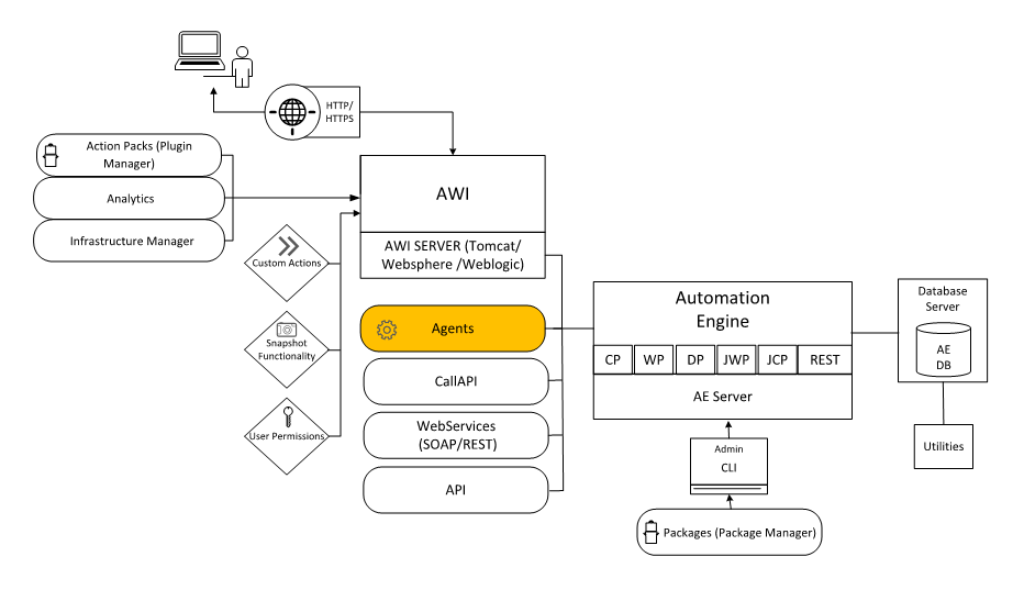 Agents are programs that run on the target system, which can be either an Operating System or an application such as SAP, PeopleSoft, etc. They not only establish the connection between the Automation Engine and those target systems but also start the execution of tasks and make both their monitoring and the corresponding reporting possible.