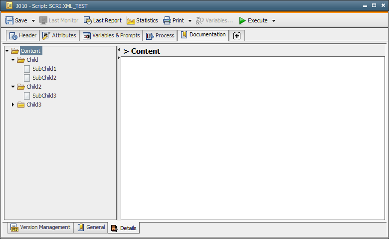 - The XML structure will only be modified in the memory. The script element does not have an effect on the Documentation tab.