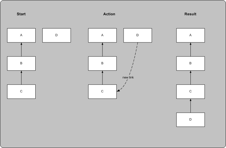 When you add a new internal predecessor link, it can change the position of the parent component. For example, if you add the link to a component that has no other link, the component will be moved to a position below the target component for the link. This is illustrated above.