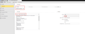 1. Type the Subject or click to insert a variable. If you leave it empty, an email subject is created automatically, which consists of Notification object name+RunID+Client.