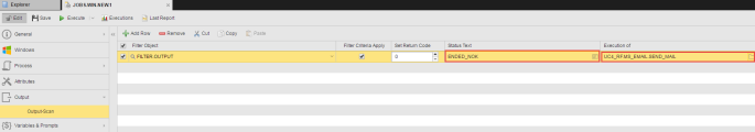 In this example if the execution of the job gets the ENDED_NOK status, the type of notification defined in the EMAIL_CAUSE notification object will be delivered to the user. EMAIL_CAUSE is as follows: