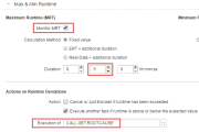 When you define the general settings of an executable object you also assign it a maximum and a minimum runtime. If the time needed to execute the object deviates from these values, you can have the system execute a task, which can be a notification object: