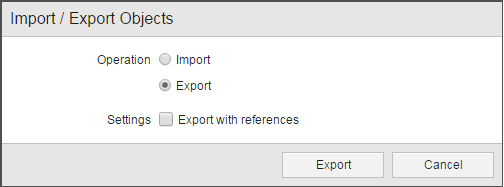 3. On the Import / Export Objects dialog activate the Export and Settings: Export with references options and click Export.