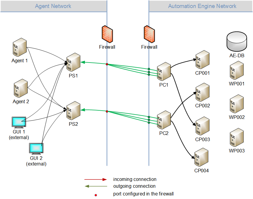 Thus you need to configure the connections from the Proxy in the firewall just once. New components (such as agents), that should connect to the server component, must be allocated to one respective server Proxy only.