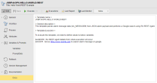JOBP.AIOPS.HELLO.WORLD.REST picks the text provided in the message of an alarm and makes a Google search using this text. The result of the search is displayed in the Workflow The Workflow consists of two tasks: