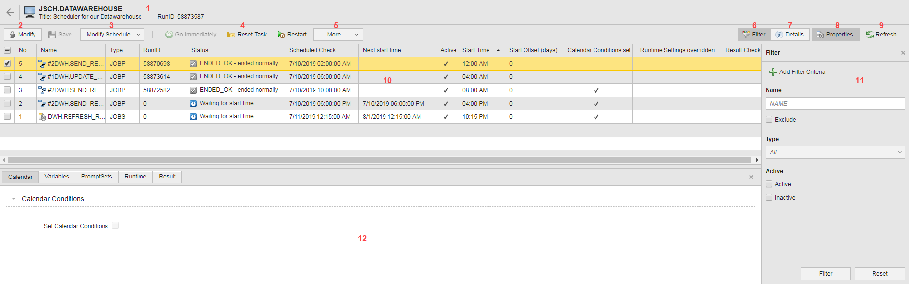 For more information see Working with the Tasks in the Schedule Monitor.