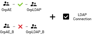 - The AE user group "GrpAE_B" is mapped to the same LDAP group "GrpLDAP"