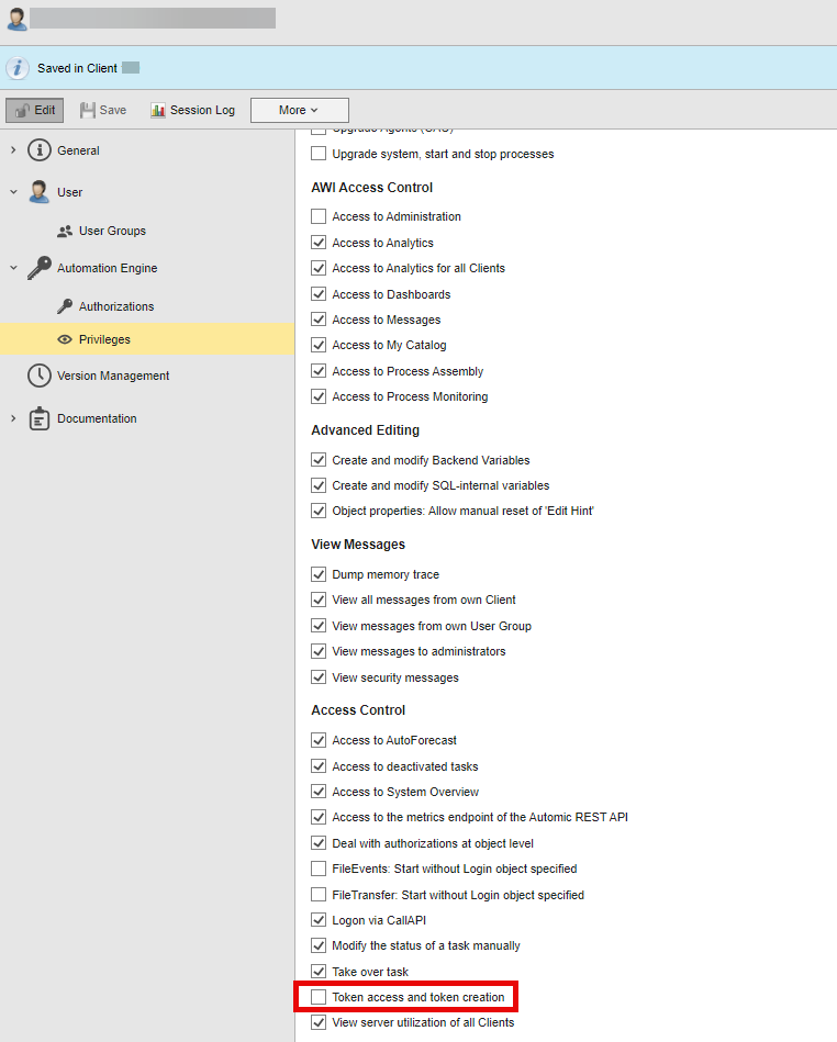 You can now use the REST API to specify which privileges and authorizations Users and User Groups should have. In the case of privileges, the REST API nomenclature is slightly different to the labels used in AWI. See Granting Automation Engine Privileges for a detailed description of the AE privileges that provides the names of the privileges both in AWI and in the REST API.