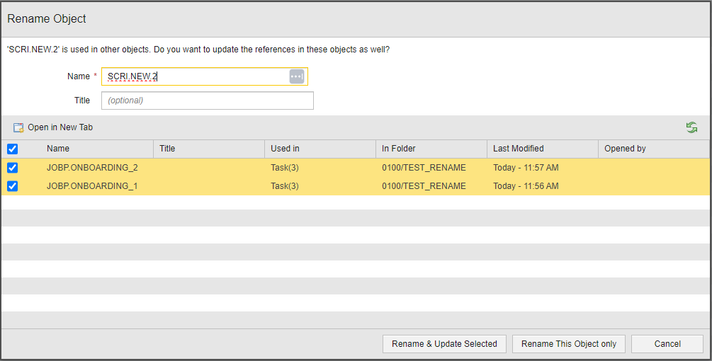 The Rename Object dialog has changed slightly. So far, it contained checkboxes before the object names that you had to activate/deactivate to perform the name change on the corresponding objects. This is what the dialog looked like until now: