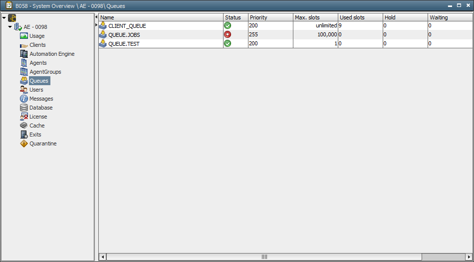 System OverviewWith the growing number of clients, users and other components of the AE system, such as server processes or agents, a way of administering them centrally has become increasingly important. The System Overview offers numerous ways and means of viewing and processing your AE system's current status with many functions being provided.