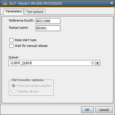 The Restart Text can be used to describe the restart point. This description is written to the execution protocol as additional information. Restart Text is an optional parameter.
