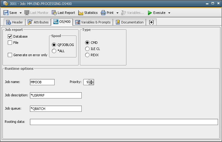 OS/400The document shown below explains the platform-specific settings of an OS/400 job.