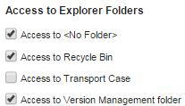 This controls the user access to special folders available on the Explorer navigation pane in the Process Assembly perspective. Transporting objects from one client to another is not part of the activities of this group, so you grant it all rights except this one: