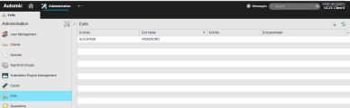 The Exits page of the Administration perspective lists all the available information about a Password Exit.