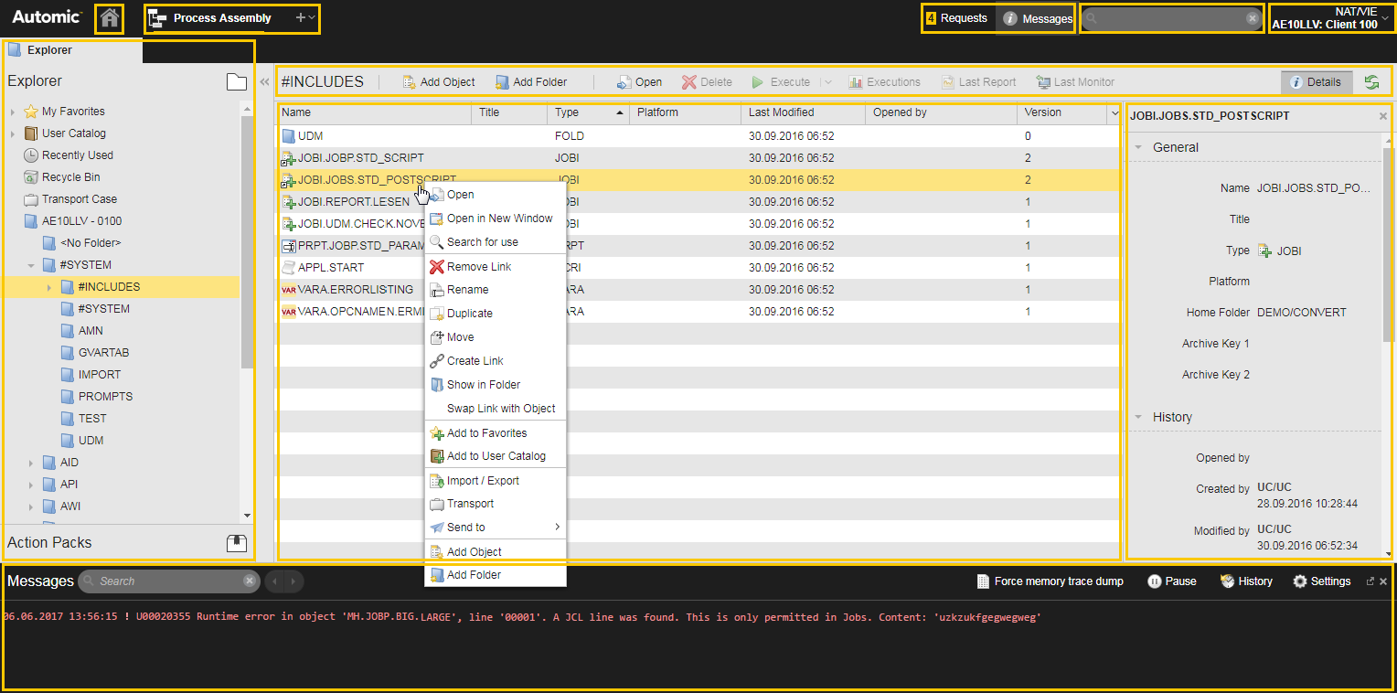 The Process Assembly perspective addressed mainly object and workflow designers as well as developers. Here you create and define objects and folders, design them, create scripts, start executions, open execution data, etc.