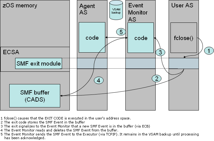 - The first one includes an agent and an Event Monitor. Both run as independent tasks. The SMF Exit is a subtask of the Event Monitor.