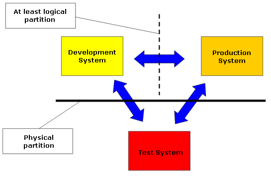 Test and production system must be physically separated in any case. This ensures that new procedures can be tested without putting your business processes at risk.