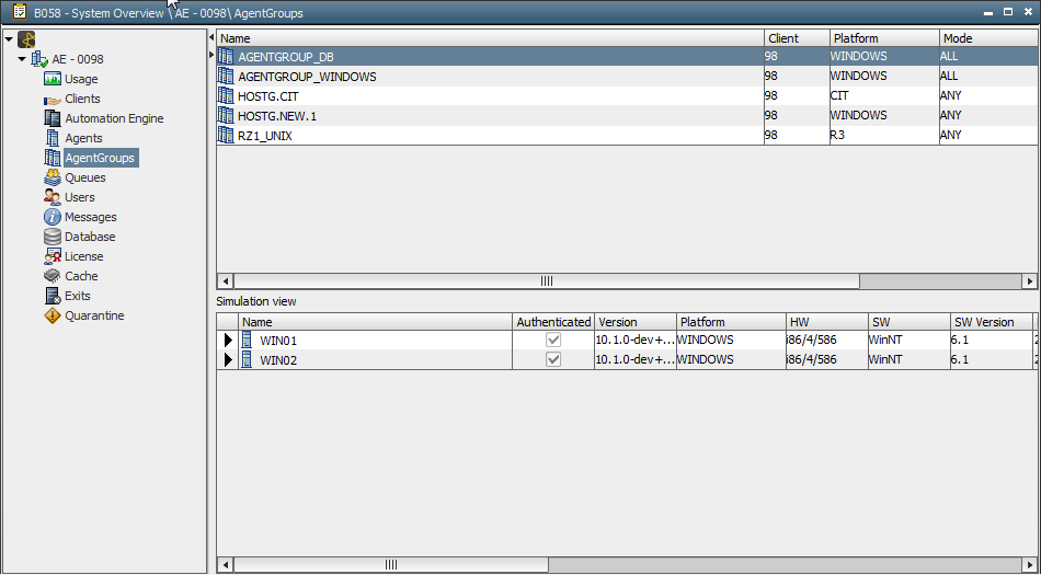Agent GroupsThis area of the System Overview displays the agent groups of the own client and, if the relevant authorization has been granted, of system client 0000.