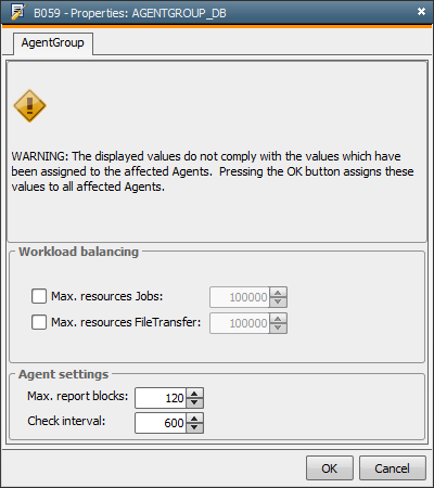 The context menu command Properties opens a dialog in which you can define several settings. All agents of the highlighted agent groups obtain these values when you click OK.
