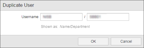 On the Duplicate User dialog, define a new Username by entering a new name and department:
