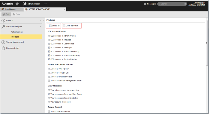 You can grant a user group privileges when you first create the user group definition in the ECC or later when you edit the user group add and remove privileges.